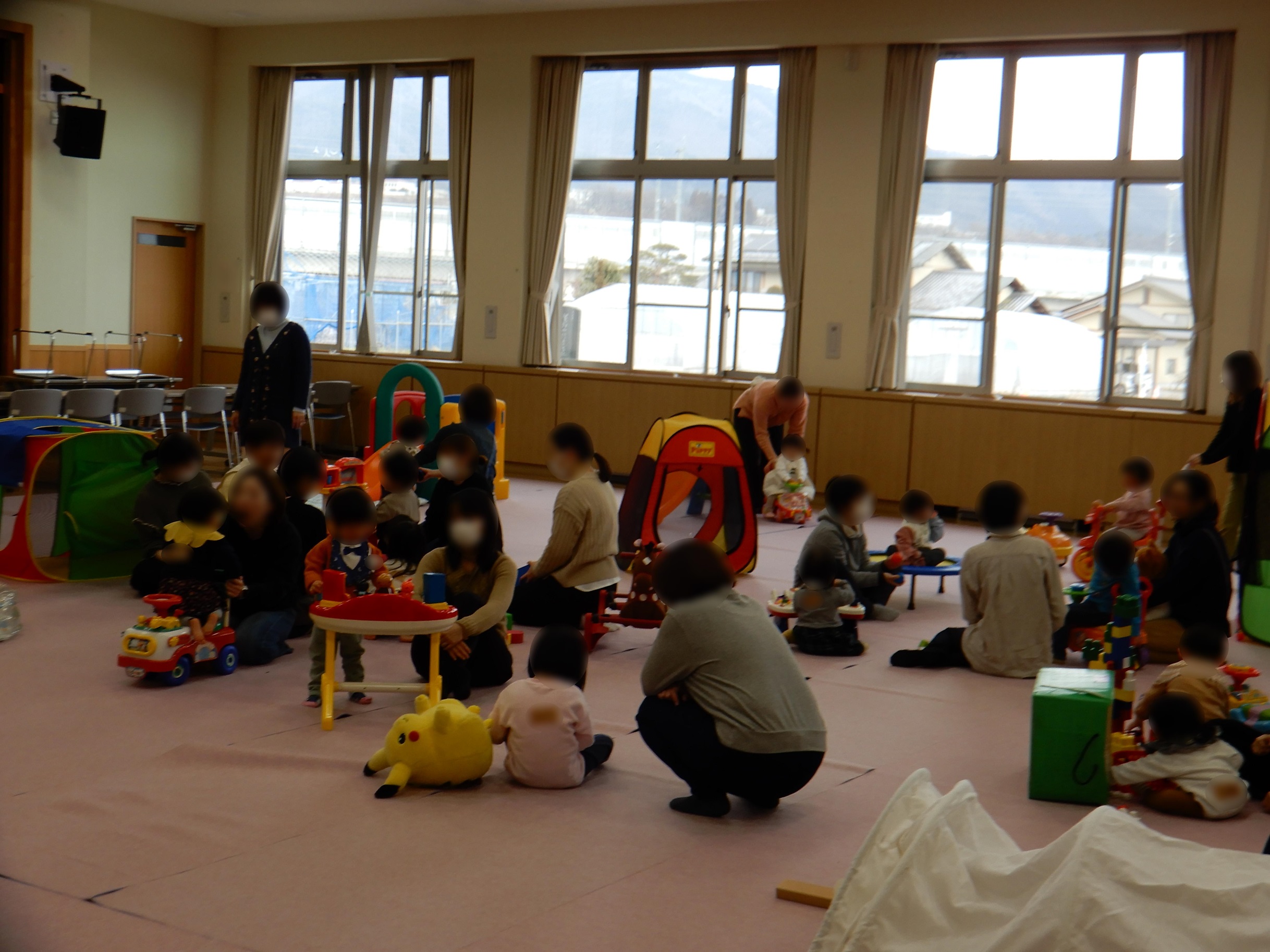 | 詳細: | 2月の子育てサロンを下記の通り実施しました。 ・日時 : 2月16日(月)10:00~11:00 ・場所 : 古里総合市民センター 多目的ホール ・参加 : 20組の親子で、お子さんは24名(古里地区のみの参加) 立春が過ぎ、すっかり春のようなお天気と、また冬へ逆もどりのお天気と・・・・・まさに「三寒四温」の日々ですが、今回はあいにく「寒」の日、前日までのぽかぽか陽気から一転して、北風の吹く寒い日となりました。委員からは「皆さん来てくれるかなぁ」と心配する声も聞こえましたが、10時を過ぎるころには多くのみなさんに来場していただくことができました。 今回は広めにマットを敷き詰めましたので、いつも以上にゆとりのある空間になり、お子さんそれぞれがお気に入りの遊具でのびのびと楽しく遊んでいました。 委員による手遊び歌と大型絵本の読み聞かせでは、歌やお話に合わせてポーズをとったり体を動かしたり、笑顔いっぱいの素敵な姿が見られました。 解散の後、委員が片付けをしていると、一緒に積み木を箱に入れてくれるお子さんたちも・・・。 「ありがとうね~、また来てね」と、ちょっぴり名残惜しいひとときでした。 毎回楽しみなおやつはお菓子の詰め合わせ。この時期はおなかに来る風邪が流行しやすいそうで、大事をとって民生委員手作りのおやつはお休みでした。3月のおやつは何かな~?? 次回は第4月曜日、3月23日です。そのころにはきっと春の花が咲いているでしょうね。 4月から保育園や幼稚園に通うお子さんは来月が最後の子育てサロンになります。来月も元気に遊びに来て下さい、お待ちしています。 |