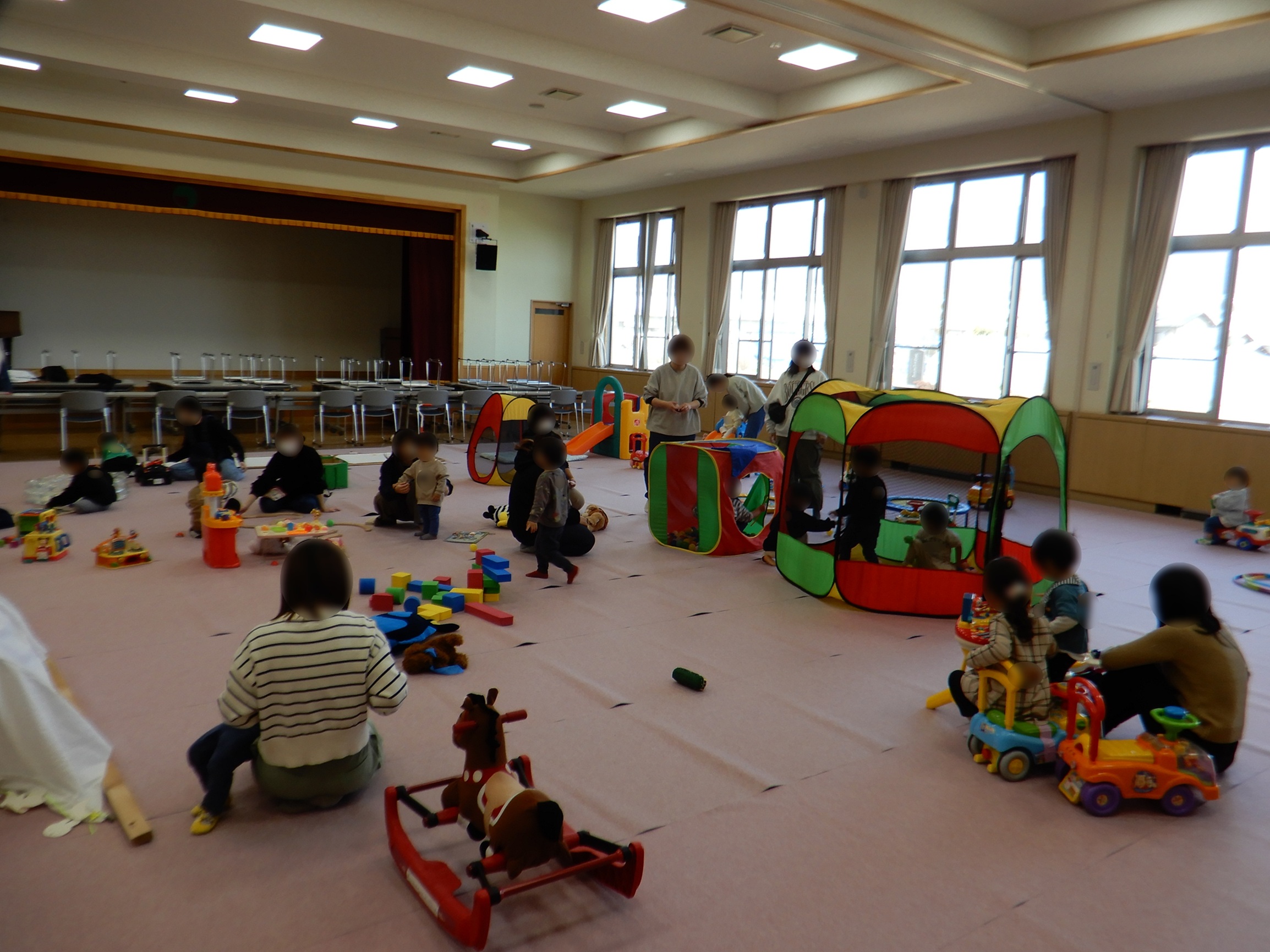 | 詳細: | 3月の子育てサロンを下記の通り実施しました。 ・日時 : 3月23日(月)10:00~11:00 ・場所 : 古里総合市民センター 多目的ホール ・参加 : 16組の親子で、お子さんは22名(古里地区のみの参加) 春らしい明るい空の下、今回も多くの親子のみなさんが来場してくださいました。 「あ、〇〇ちゃん♡」と、友だちを笑顔で迎えに行くお子さんや、お母さんの胸から下りるとさっとお気に入りのおもちゃへ近寄り、手に取るお子さん・・・・・・会場の雰囲気にすっかり慣れて、それぞれに楽しむ姿が見られ、1年間11回の積み重ねを感じました。また、今回は春休み中ということもあり、4歳以上のお兄さんお姉さんが、妹や弟と仲良く遊ぶ姿もありました。 終盤に行った手遊び歌と大型絵本の読み聞かせは、どちらも体全体を使って楽しめる内容で、「ちゅっ」とか「はい、どうぞ」「ぴょ~~ん」などの声に合わせて、大勢の子どもたちお母さんたちが一緒にポーズをとったり体を動かしたりしていました。 毎回民生委員が心を込めて用意してくれるおやつ、今回は揚げたてのひなあられとバナナでした。もしかすると、ひな飾りの祭壇にそなえてもらった幸せな?あられもあったかもしれませんね。 4月から保育園や幼稚園に通うお子さんとは、今回でお別れとなりました。少し寂しくなりますが、また新しいお友だちが来てくれるのを楽しみにしています。お待ちしていますね。 |